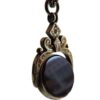 It features a unique gold fob with a carnelian stone on one side and bloodstone on the other side – the stones are set in a decorative 15 carat gold fob and a 9 carat gold chain attached to wear as a pendant necklace. Beautiful condition.