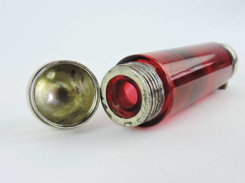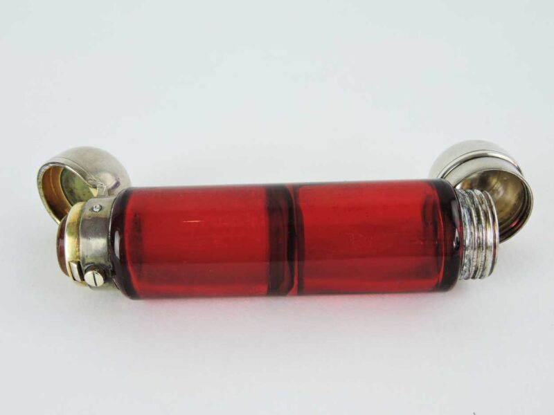 A stunning cranberry glass double end perfume bottle, perfect as a unique treasured gift, or for collectors.