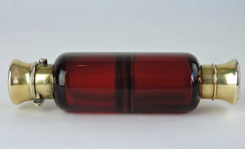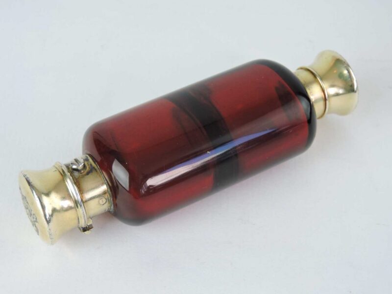 v** SOLD ARCHIVES **vVictorian Cranberry Glass Double End Perfume / Scent Bottle