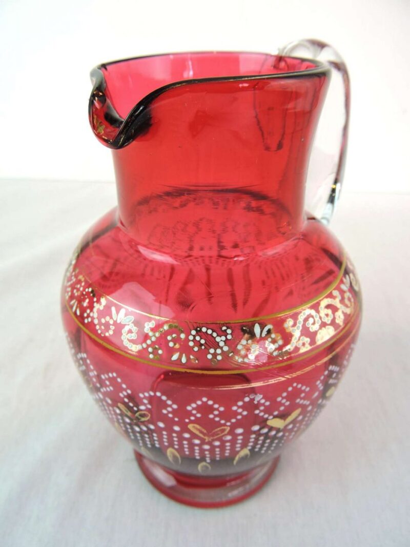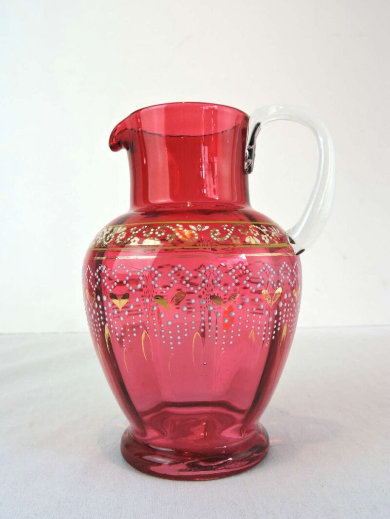 Victorian Cranberry Jug with Gilt & Enamel Decoration.
