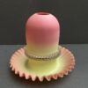 A Signed Thomas Webb – Burmese Glass Fairy Lamp – Pink & Yellow with Fluted Burmese Glass Base & S. Clarke Fitting