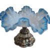 A Victorian ruffled rimmed glass compote in white glass with a blue border.  The compote base is made of Hungarian silver.  Nice size for serving chocolates or candies.  Measures 6 inches diameter x 3.5 inches high.