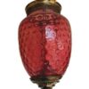 A ‘Victorian Gilt & Cranberry Glass Hanging Parlor Lamp’ –  dates circa 1870. Features a large cranberry glass decorated in a thumb-print like pattern, with a gilt brass frame and hanging chain. Electrical wiring had been updated.