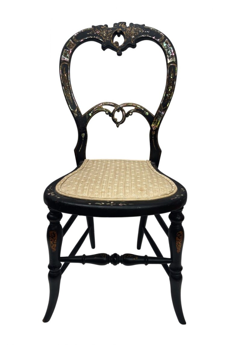Victorian Petite Black Lacquered Side Chair with Mother of Pearl Inlay