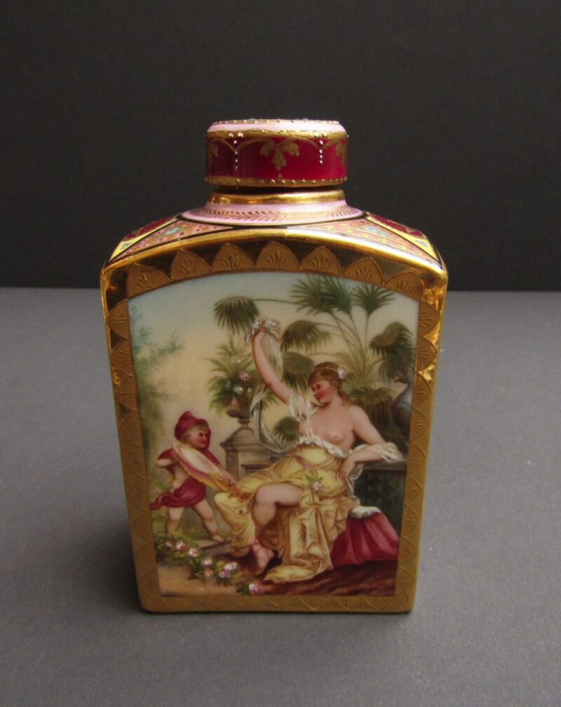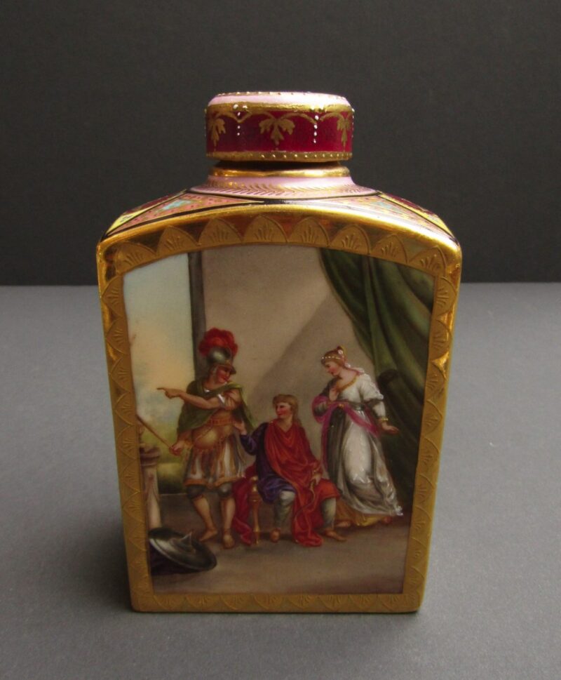 Vienna Porcelain Hand Painted & Enamelled Tea Caddy with Hand Painted Classical Scenes – circa 1880