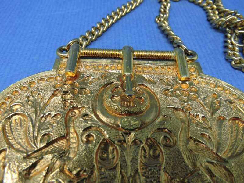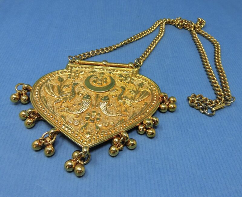 Vintage Gold Tone Metal Massive Necklace and Chain, Middle Eastern Design, c. 1960s, by Hungarian-American Fashion Designer Judith Lieber