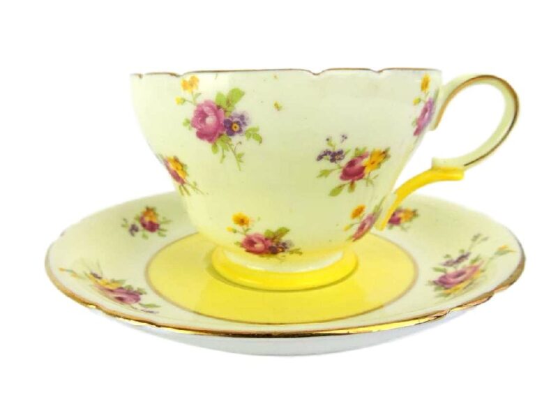 Vintage Shelley Yellow & Roses – Henley Shape – Tea Cup & Saucer in #z13330