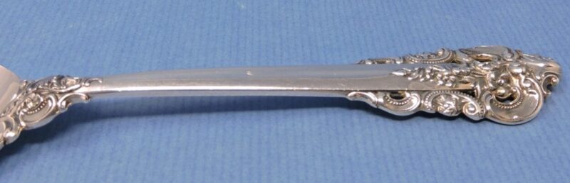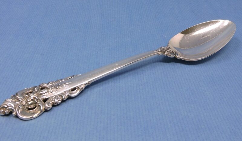 The spoon is stamped “Wallace Sterling” on the back of the handle.