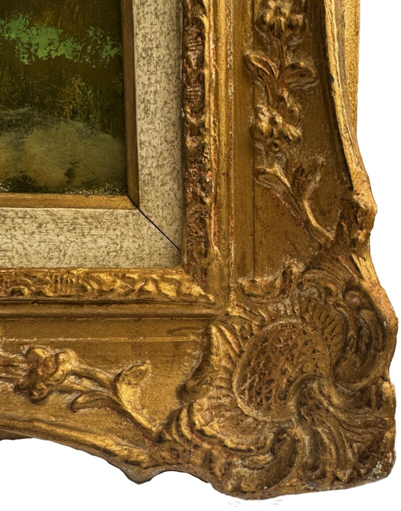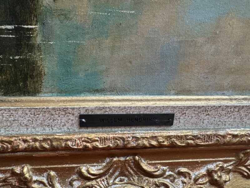 |This large canvas provides not only an objective Dutch pastoral landscape example but an emotionally captivating view of a river that Willem Hendricks must have loved. Many of his works depict different parts of this river. The generous handsome frame adds to the historical time period of the work.