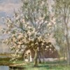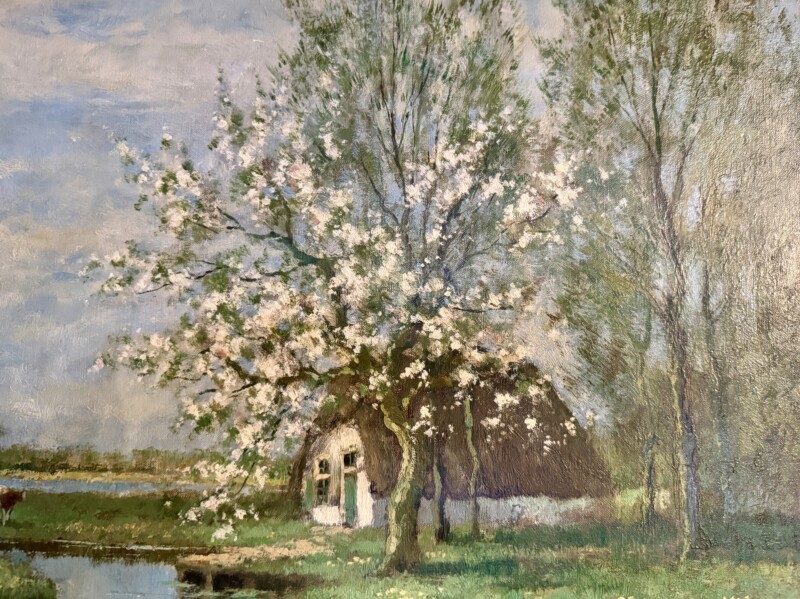 Willem Hendriks (1888-1966)of the Netherlands, Dutch Oil Painting on Canvas, Pastural Scene with Spring Blossoms