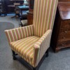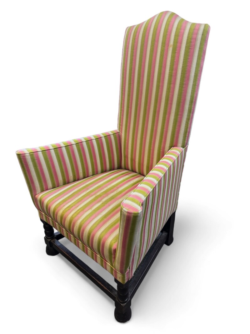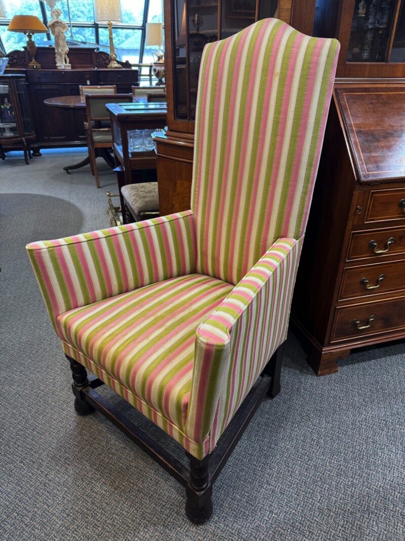 William and Mary Style High Back Armchair Reupholstered in Modern Striped Fabric