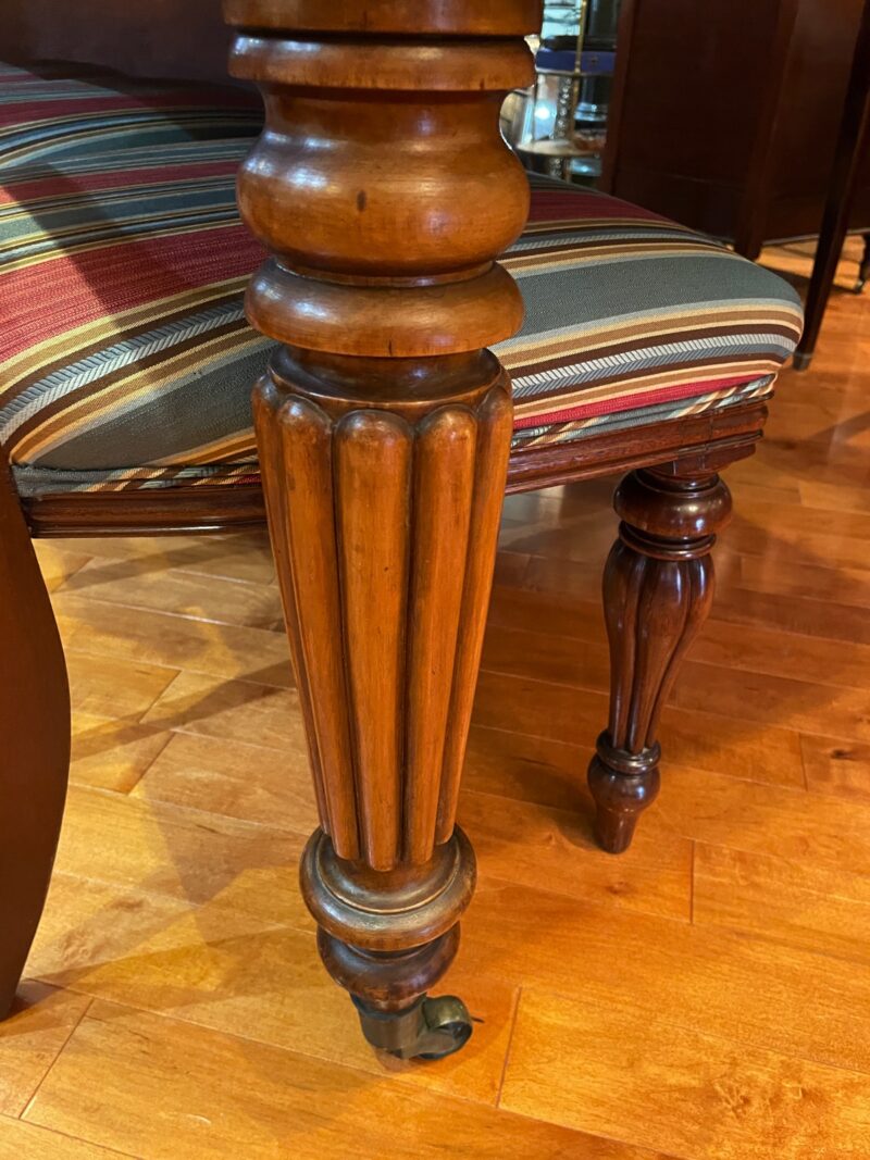 The legs are reeded and taper down to brass castors feet which allows the table to move when only one person is cranking open the table.