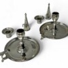 Silver HollowareThese are a wonderful pair of Georgian sterling silver chambersticks complete with original conical extinguishers and removable sconce nozzles. Thomas Hannam completed his apprenticeship to John Café in 1761 and went into partnership with John Crouch I in 1765. The firm was known particularly as makers of fine quality trays, salvers and waiters. John Crouch II & Thomas Hannam formed a partnership in 1799 – 1807.