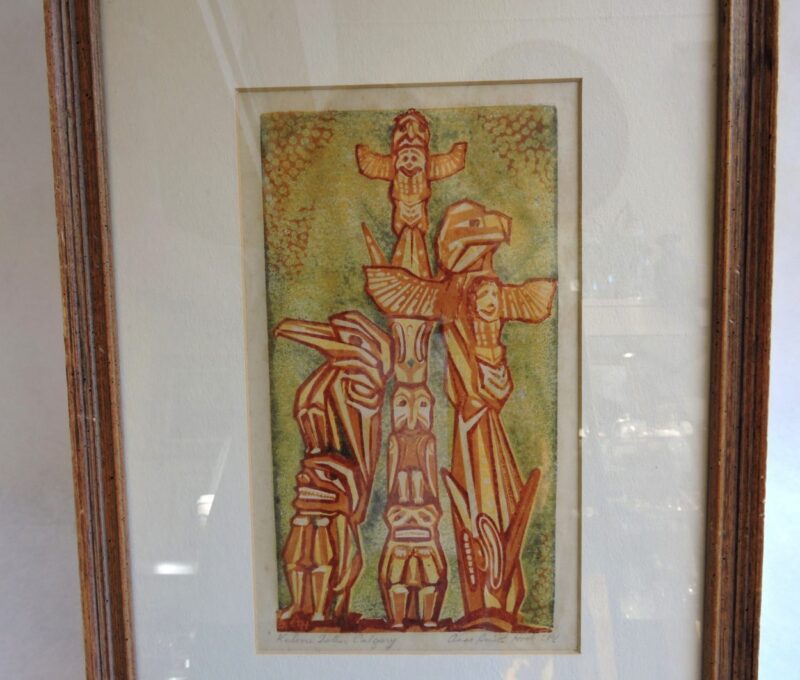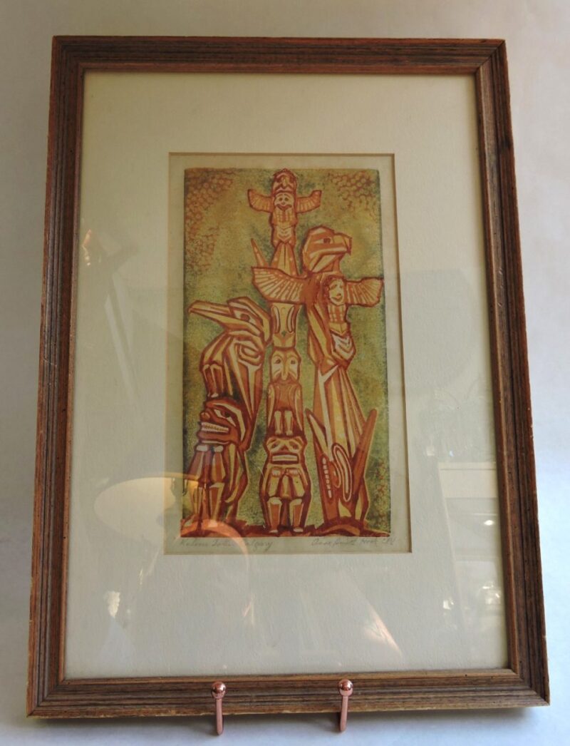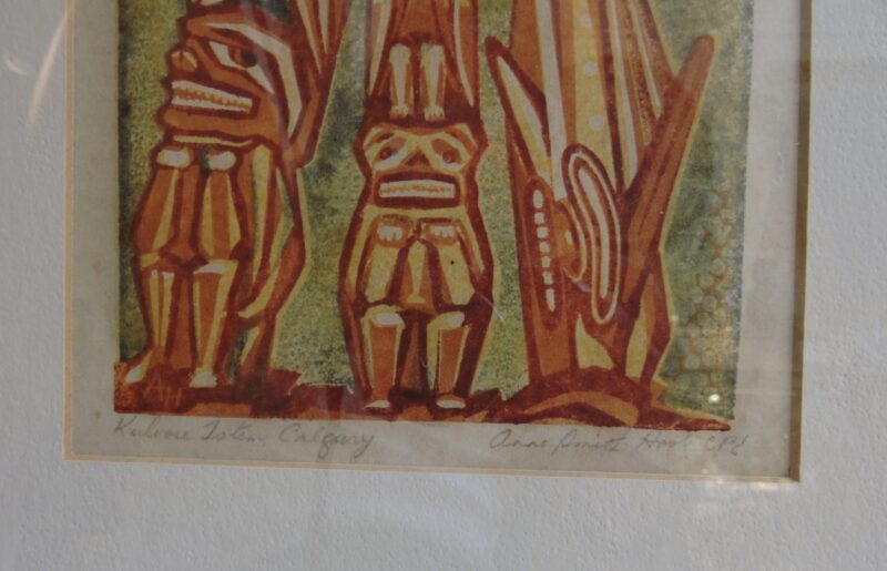 Wood Block Print of “Kuloose Totem, Calgary” by Canadian Artist – Anne Hook Smith